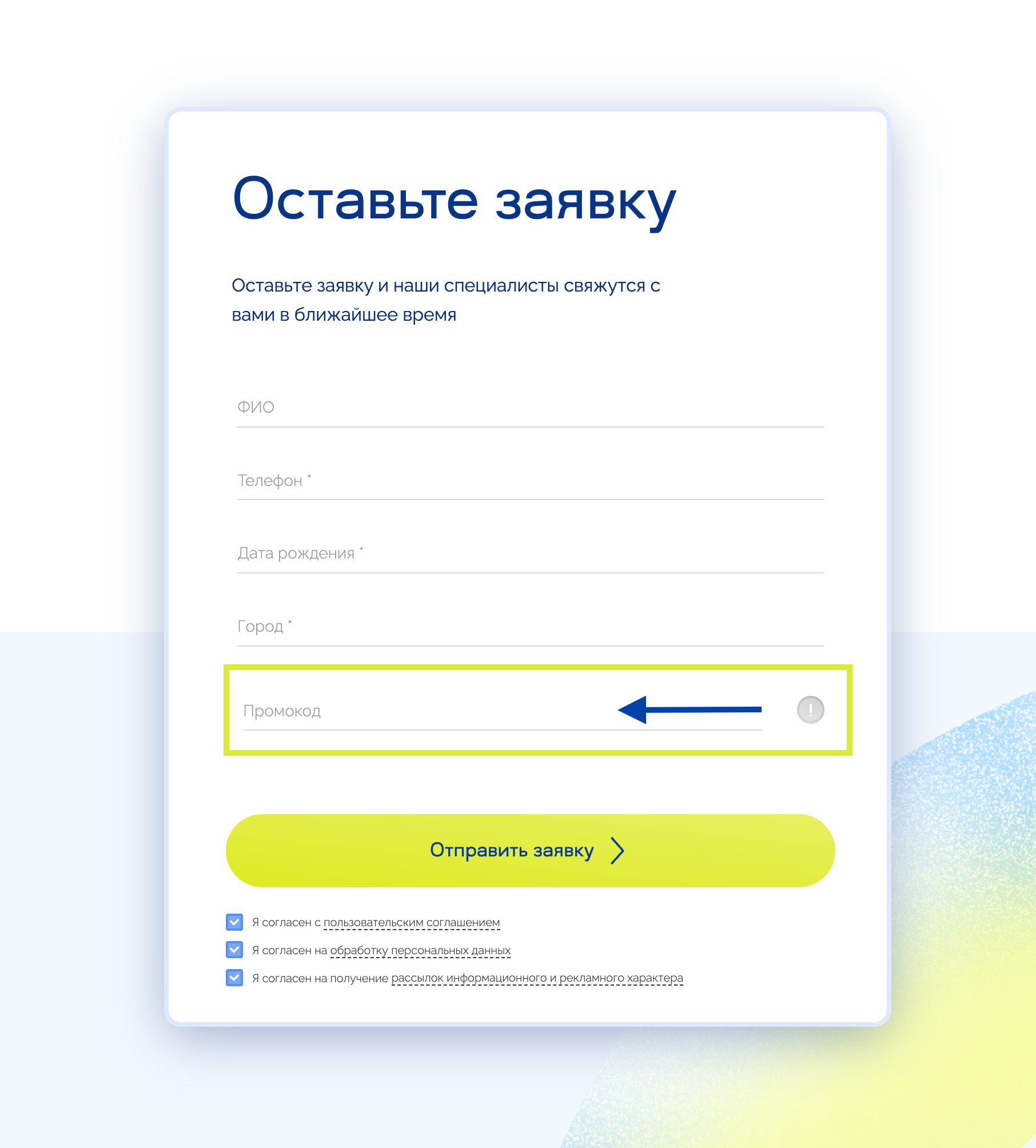 вашу уникальную ссылку или промокод.
