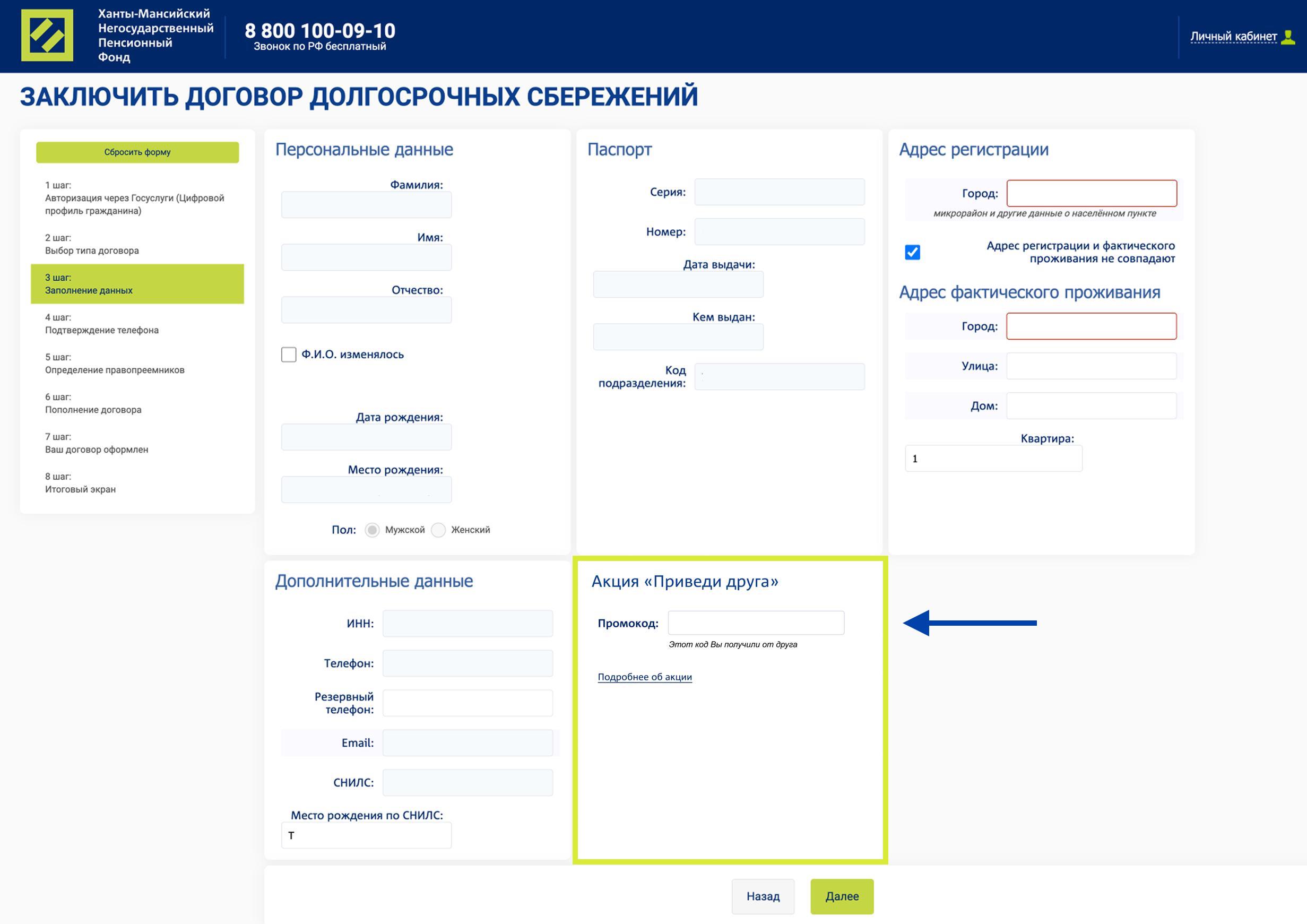 2. На сайте hmnpf.ru, когда заключаете договор онлайн – шаг №3