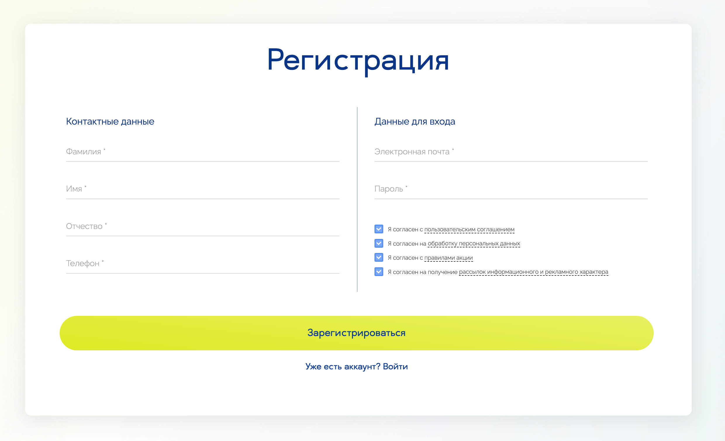 1. Зарегистрироваться – заполнить форму, ознакомиться и принять условия акции.